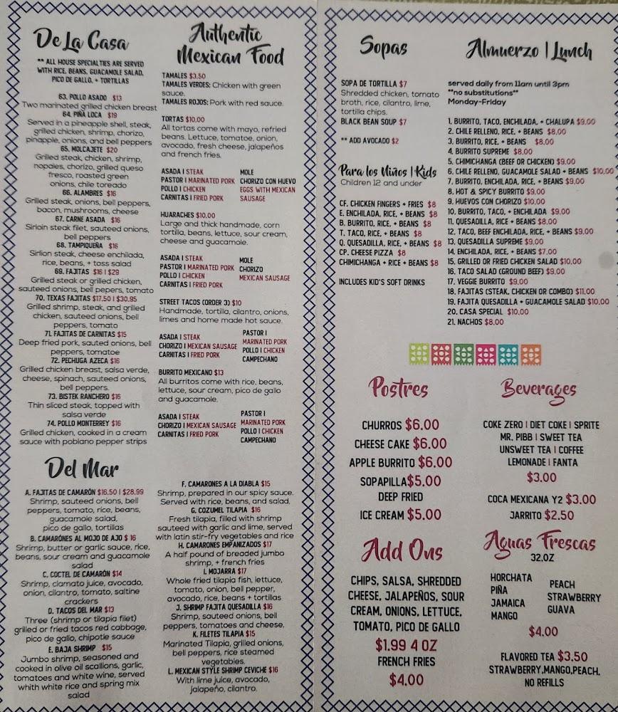 Vegetarian options provide alternatives for all preferences. Weekly lunch specials entice diners on the go. Desserts like Churro Cheesecake and orders of Macho Nachos always please. Enjoy a broad selection of beverages, including flavorful cocktails, beers, and soft drinks.
